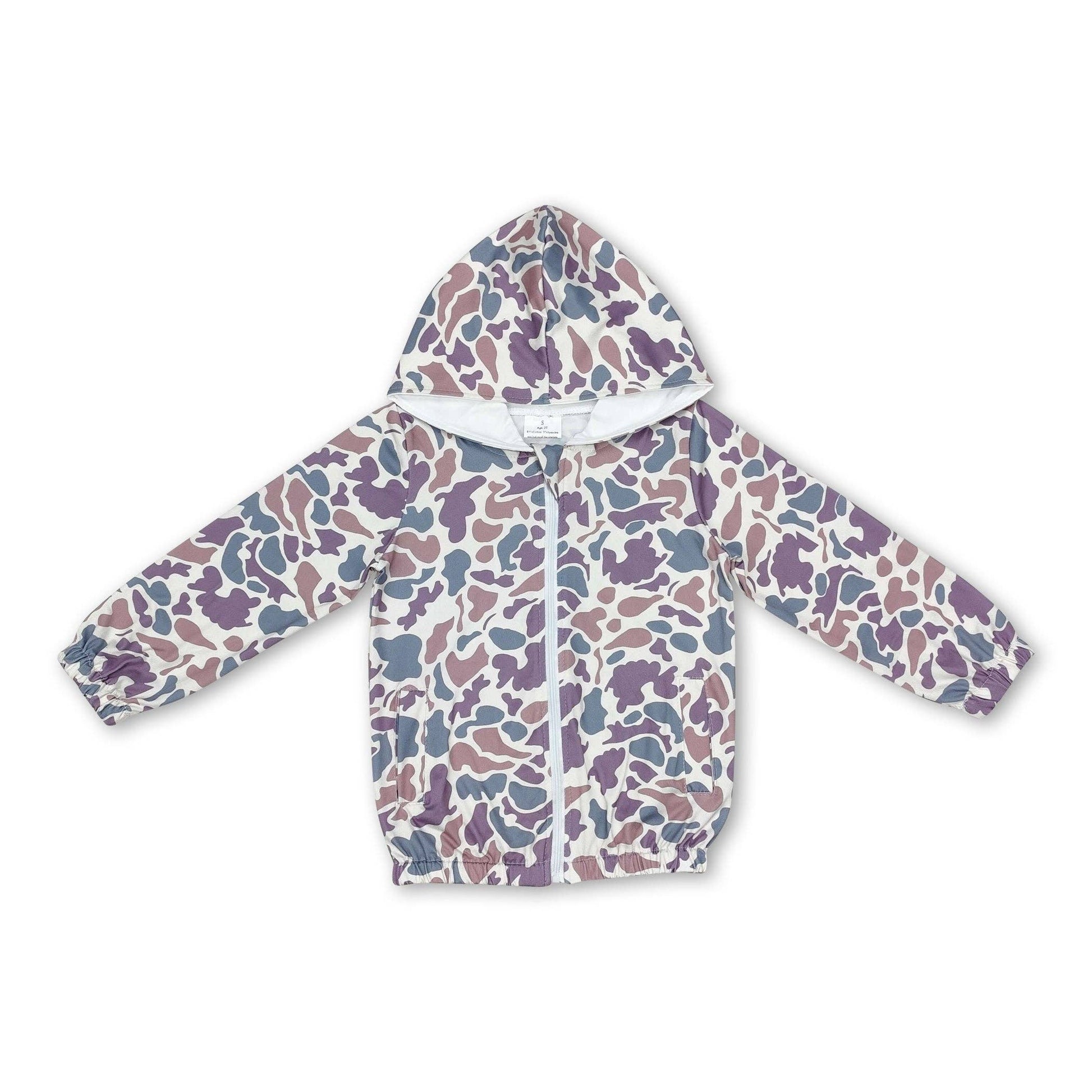 This lightweight camo zip hooded jacket is ready for any mission—whether that's backyard adventures or everyday exploration. The fun camouflage pattern keeps things interesting, while the comfy breathable fabric means no overheating during playtime. Zip it up, pull the hood down, and let your little one's personality shine through. Built for kids who are always on the move and never afraid to stand out.